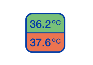 Spalvotas šviesos įspėjimas apie karščiavimą - Silent GlowTM technologija, kurią Microlife pirmieji pristatė Europoje. Ši technologija padeda lengviau suvokti pamatuotos temperatūros reikšmę.